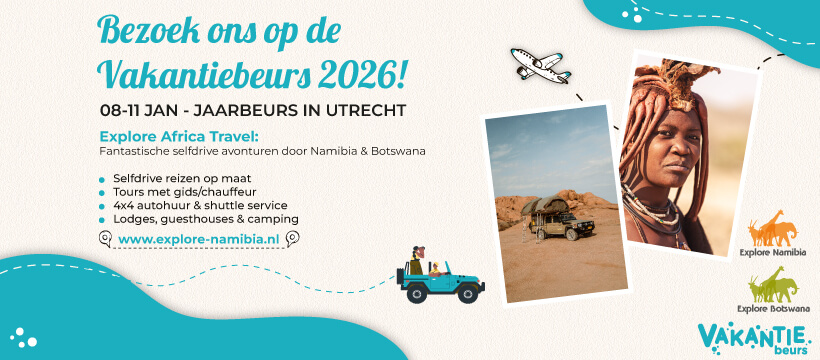 Explore Namibia will be at the Vakantiebeurs Utrecht, 8-11 jan 2026, Jaarbeurs Utrecht. Anyone interested in a self-drive adventure or a private guided tour in Namibia and/or Botswana is warmly invited to visit our booth to discuss your personal travel plans with one of our travel experts.