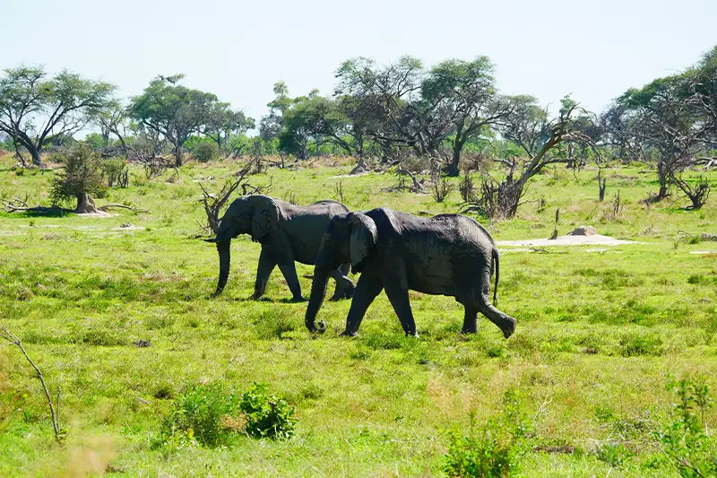 We will mainly travel on small sandy tracks, passing through dense mopane forests in the Moremi National Park. By late afternoon, we will leave the park and cross the bridge over the Khwai River. Our lovely guesthouse is located near this river, where we will spend the night.