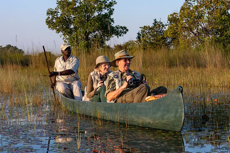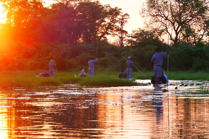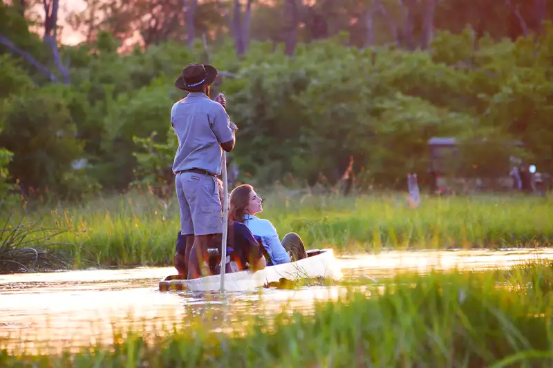 You can shape the day exactly as you wish. Take the opportunity to join a guided safari (lodge activity) in the stunning wilderness of the Khwai area and experience the fascinating wildlife up close. Alternatively, you can enjoy a traditional mokoro ride—an unforgettable experience where you explore the tranquil waterways in a dugout canoe and enjoy the lush vegetation from a unique perspective.